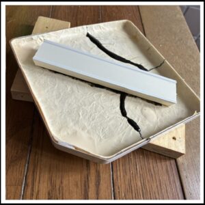 ・最後に、2枚目に示す様に、「補強材」を活用しました。「補強材の面」と「蓋の裏面」の両方に接着剤で、がっちりと固定です。