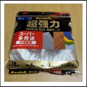 特に重要な事は、「両面テープ」の材質です。一般的な「両面テープ」では、「PP」が対象外である様です。うちでは、「PP」でも使用可能なモノを選択しました。