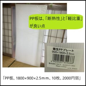 ・本記事では、「PP板」で、「窓と室内の間に空気層」に着目しました。